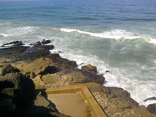 Uma vez na praia das maças fomos até ao miradouro e depois demos uns mergulhos no mar. Antes de fazermos a viagem de regresso, fomos comer pão com chouriço que é vendido ali bem perto.